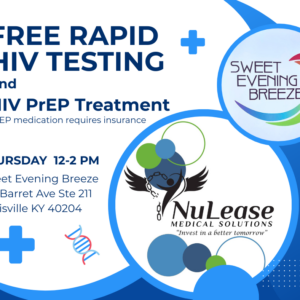 Free Rapid HIV Testing Sweet Evening Breeze and NuLease Medical Solutions are partnering to bring ... 19 Feb 12:00 pm - 2:00 pm Sweet Evening Breeze801 Barrett Avenue Suite 211, Louisville, KY 40204